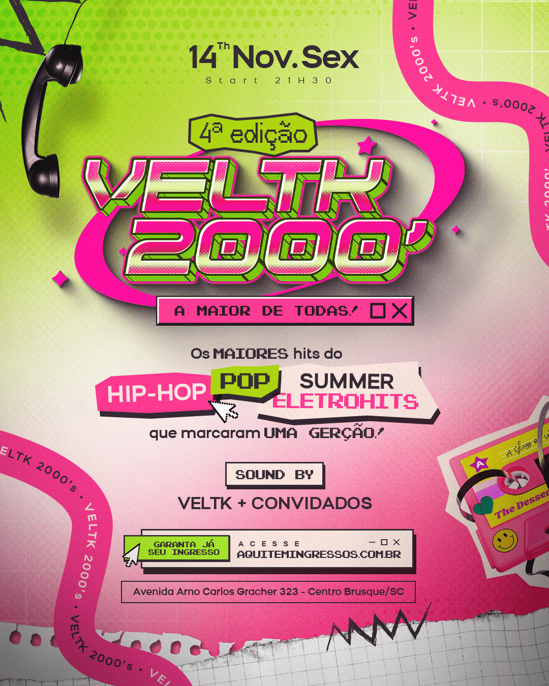 Vai rolar muuuito HIP HOP, POP e as batidas eternas do Summer Eletrohits tudo junto na maior edição de todas do VELTK 2000´S! 💿