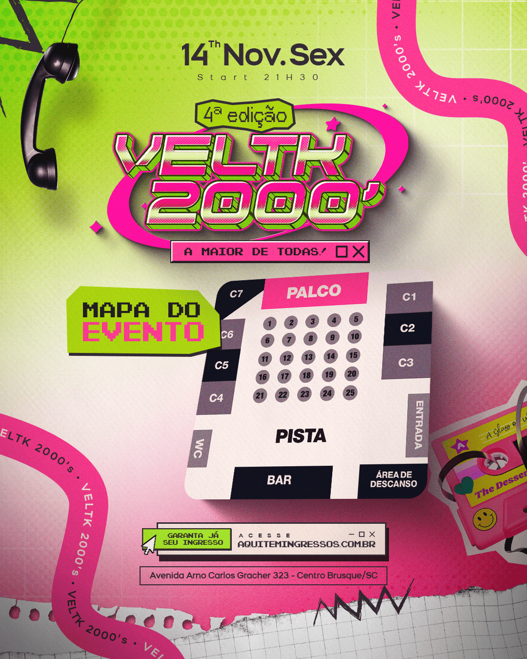 Então já sabe dia 14 de novembro, sexta-feira, prepara o teu melhor look, chama a galera e vem pro rolê curtir como se fosse 2000 e pouco outra vez.